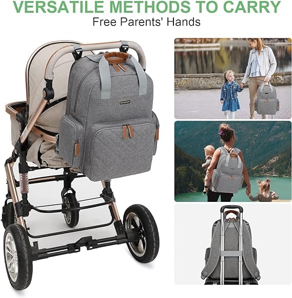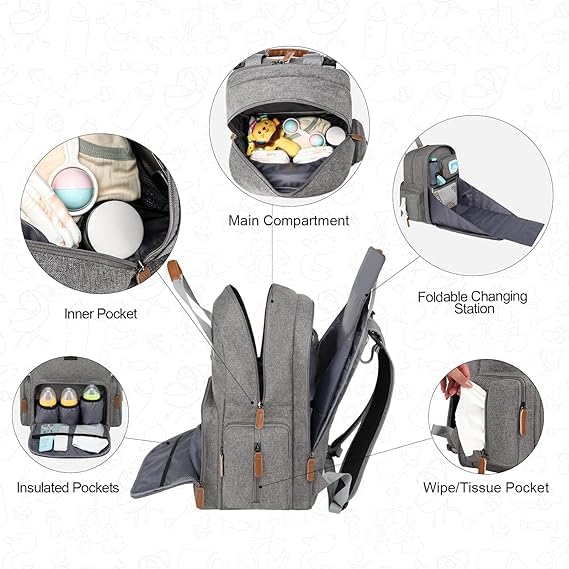 Diaper Bag Backpack with Diaper Station, Baby Diaper Bag Organizer for Moms and Dads