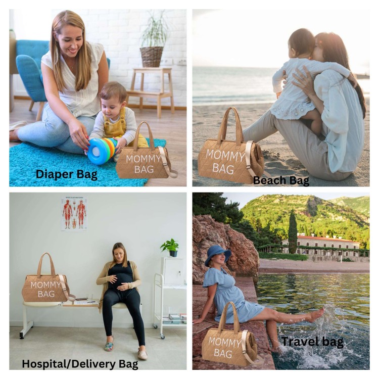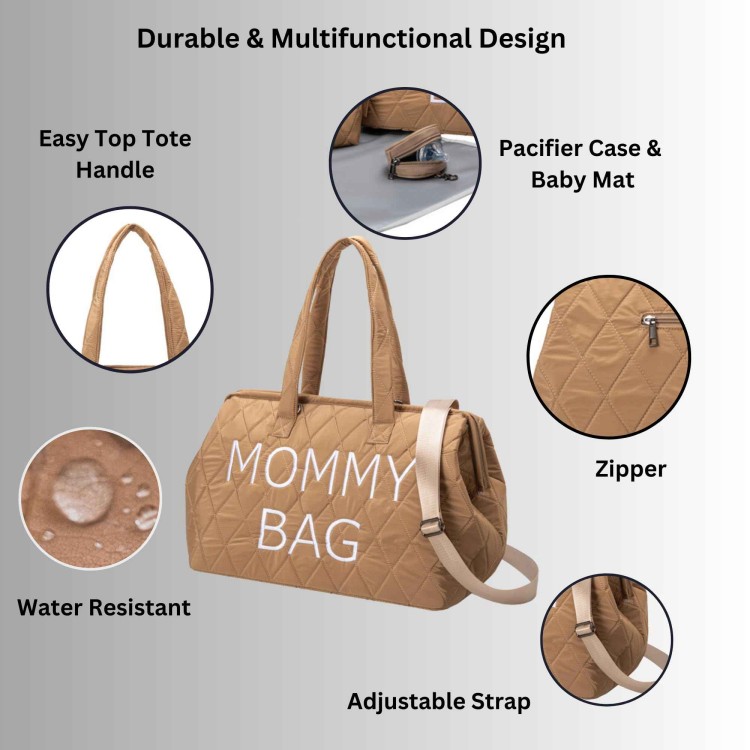 Mommy Bag with 2 pouches, Pacifier Case, Changing Mat, Waterproof Hospital Bag Maternity