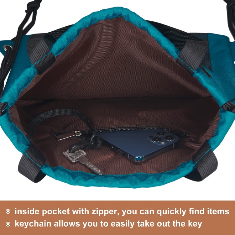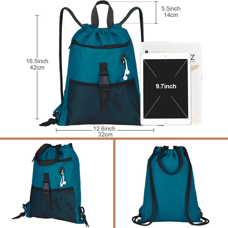 This drawstring backpack for men with pockets has sufficient capacity, its size is 16.5x13 Inches, and it can store towels,clothes, sports vests, sports shoes, swimming goggles magazines,and other items, meeting your basic needs of fitness, daily short trips and hiking.There are zipper pockets inside and outside, where you can store cards, keys, water bottle,etc. This drawstring bag sport keeps your items in order.One mesh pocket with adjustable buckle strap.