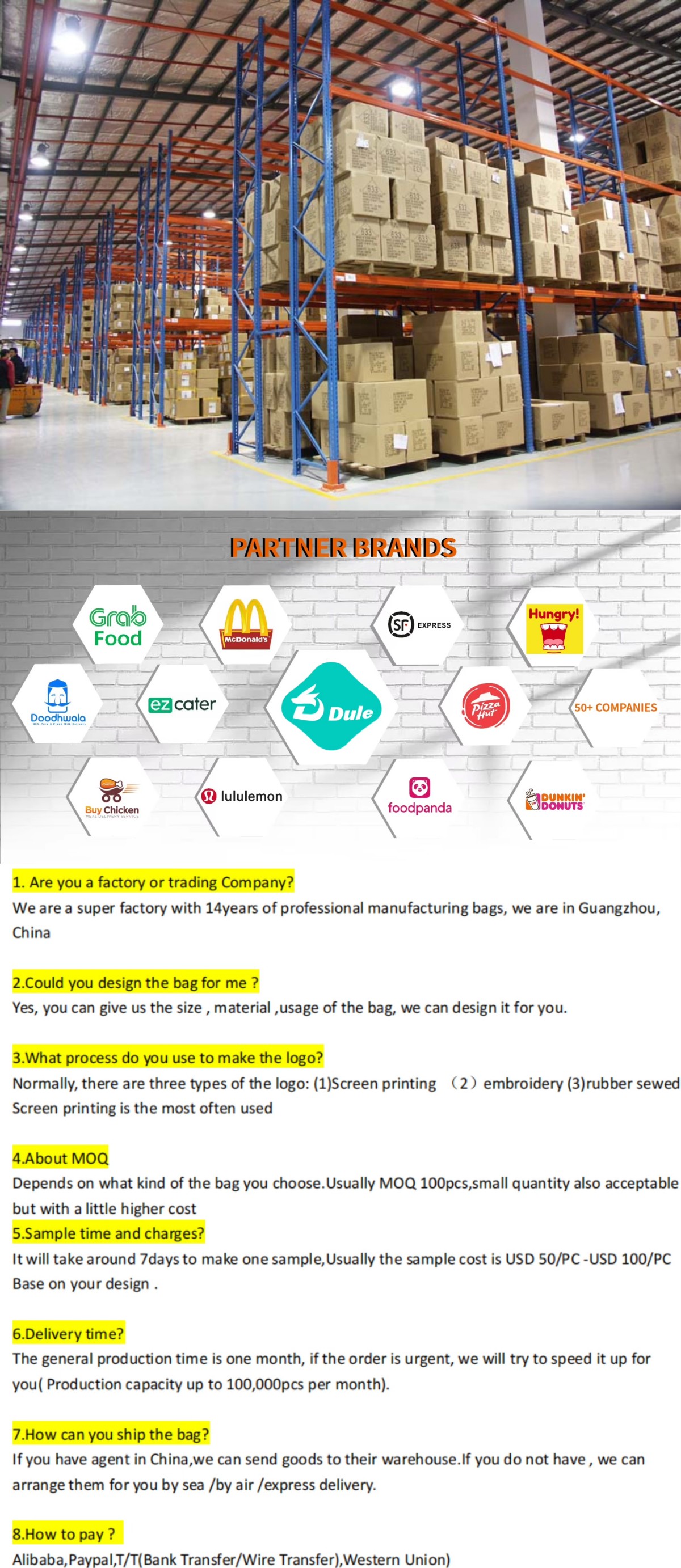 * Payment: T/T, Alibaba Trade Assurance, WeChat, PayPal, Western Union
