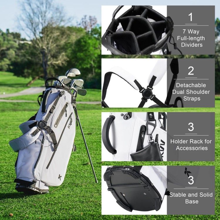 Custom Lightweight Golf Stand Bag with 7 Way Full-Length Dividers, 5 Zippered Pockets