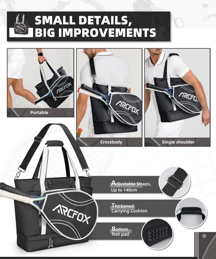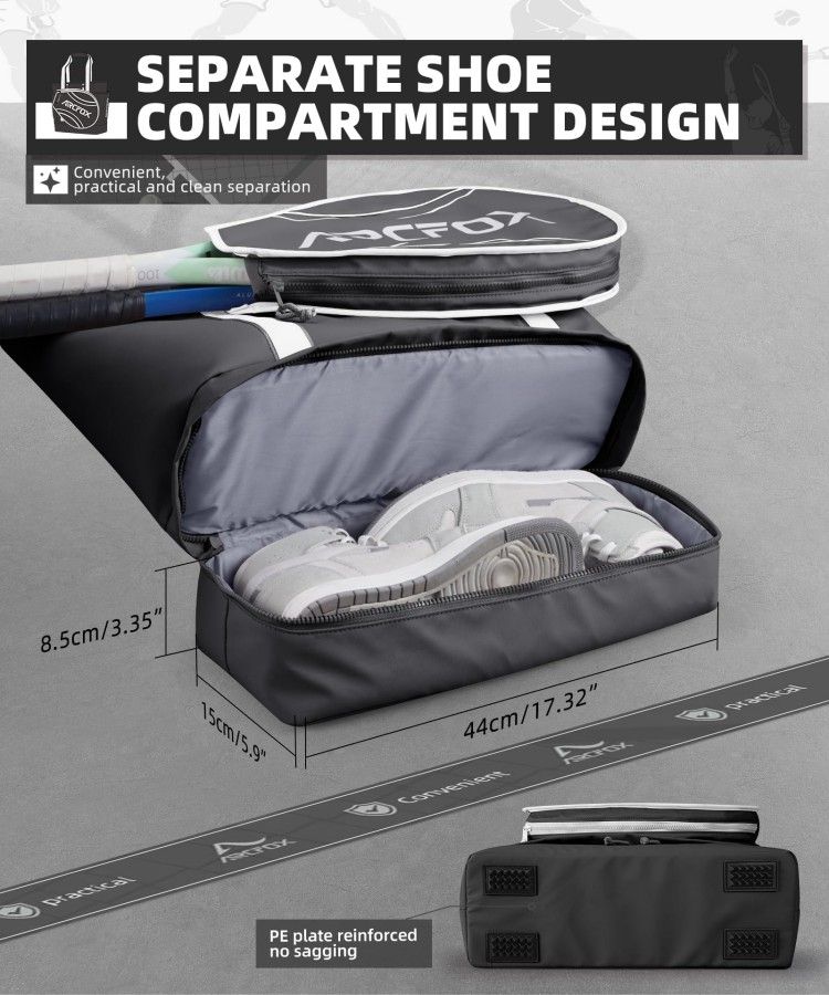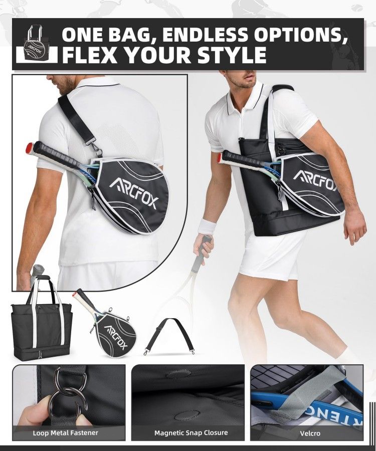 Tennis Tote Bag Tennis Racket Shoulder Bag with Shoe Storage Oxford Cloth Large