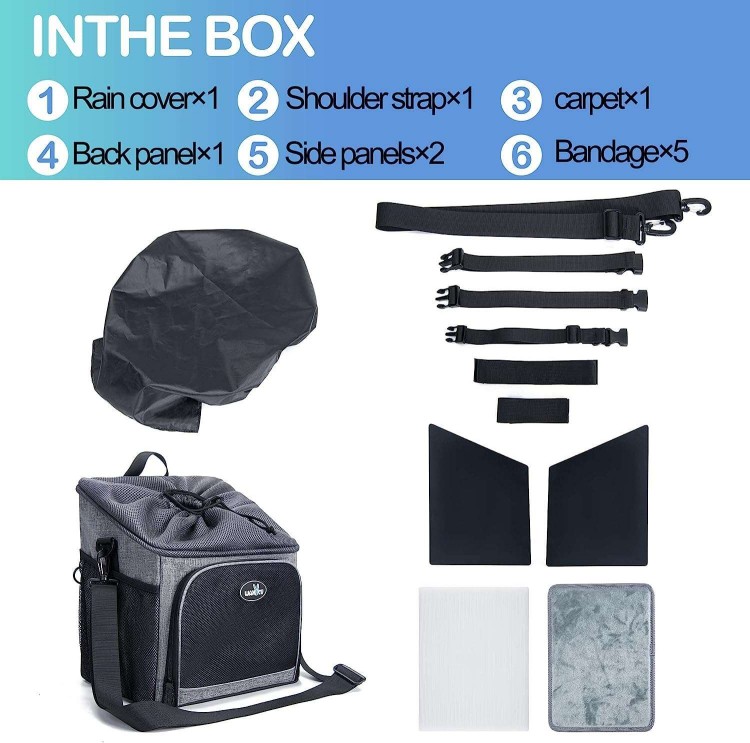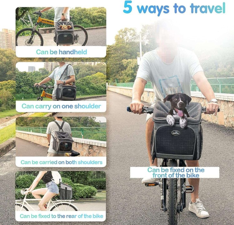 Dog Bike Basket Carrier, Pet Bicycle Front Carrier Backpack for Bike Riding Foldable Removable, Reflective Strips, 2 Side Storage Pockets, Pet Travel Bag for Cats Small Dogs