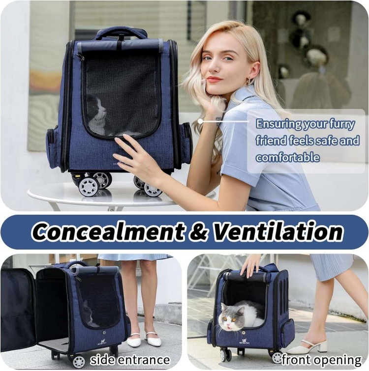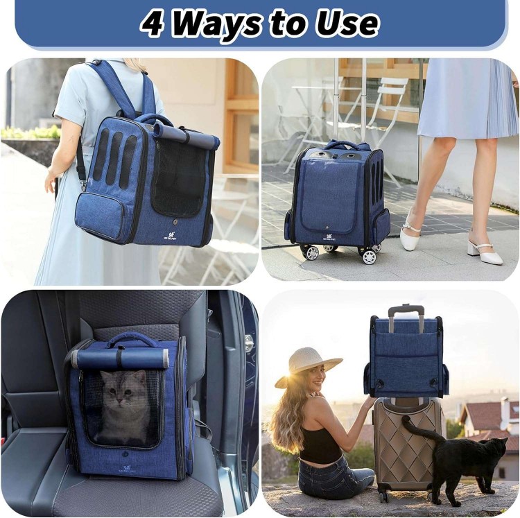 MR.BLACAT Cat Backpack Carrier with Wheels,Cat Backpack for Carrying Cat on Wheels,Rolling Pet Backp