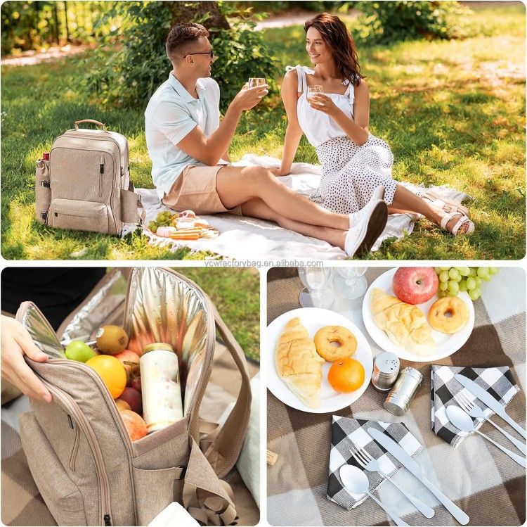 24L Insulated Picnic Backpack for 2 Person with tableware