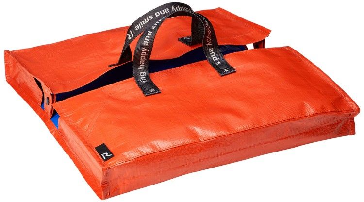 The unique 2-way eco bag can be folded in the middle to carry not only large items but also drinks.After use, it can be rolled up to a compact size.
