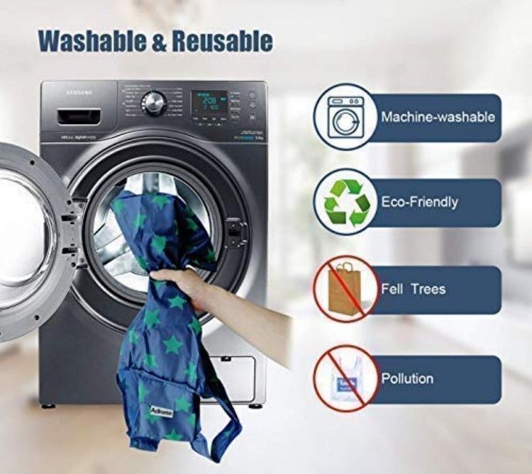 2.Washable & Reusable Grocery Bag: reusable grocery shopping bags only use pure ripstop polyester to craft, our standard shopping bags reusable. Our shopping tote can be washed every time after you use. Recommend Mild Detergent and Hang to Dry!