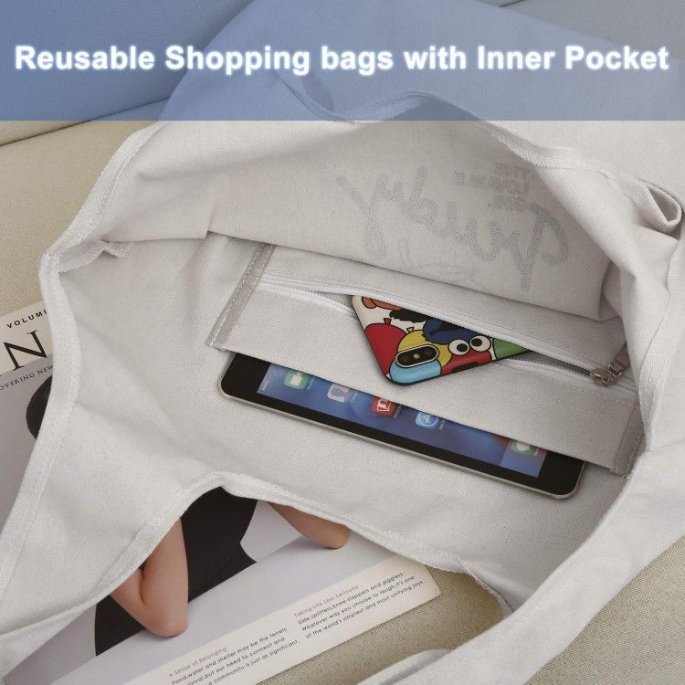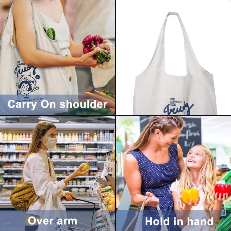 Durable: This shoulder bag is made of soft canvas, very light and durable for daily use. Great quality material reusable grocery bags hold tons of groceries, like canned food, water, Milk and other stuffs. No Rips for the shopping bags reusable as well as the reusable shopping bags which provide plenty of support. The reusable grocery shopping bags hold up well against the weight of heavy shopping trips