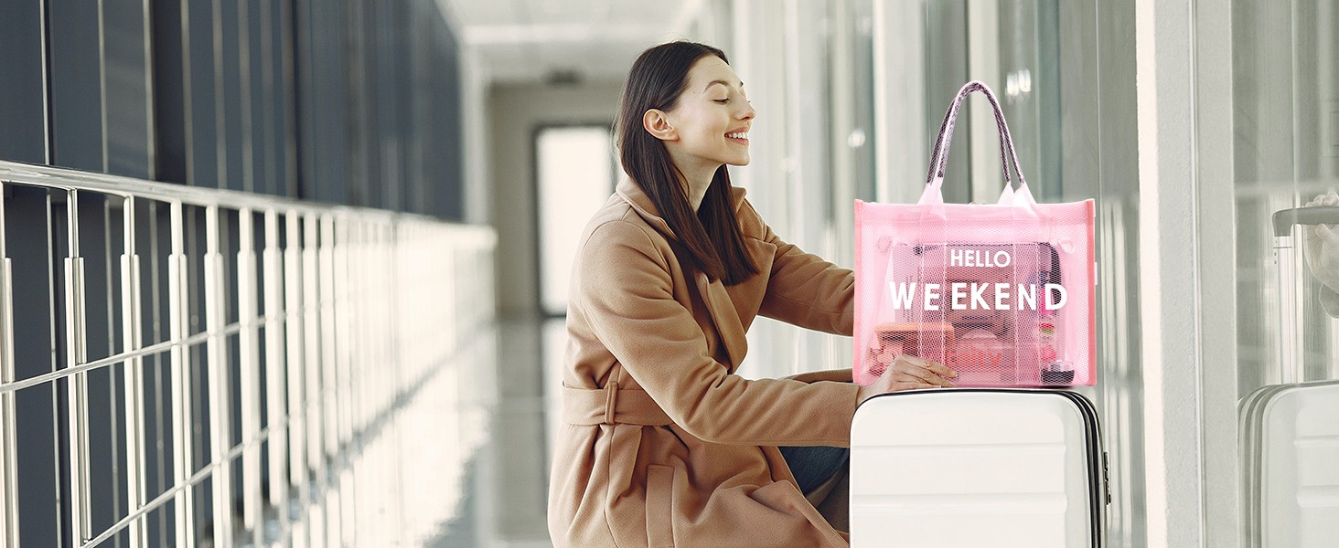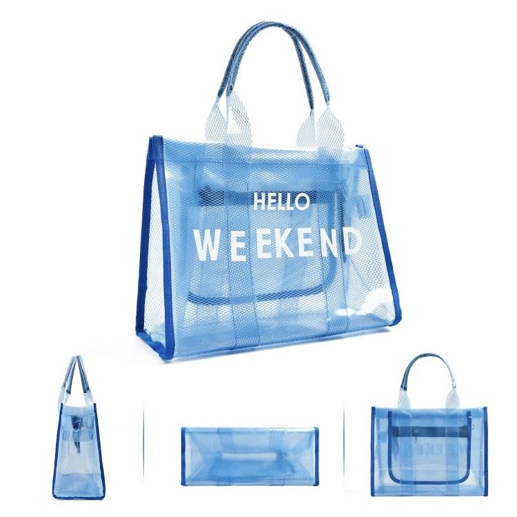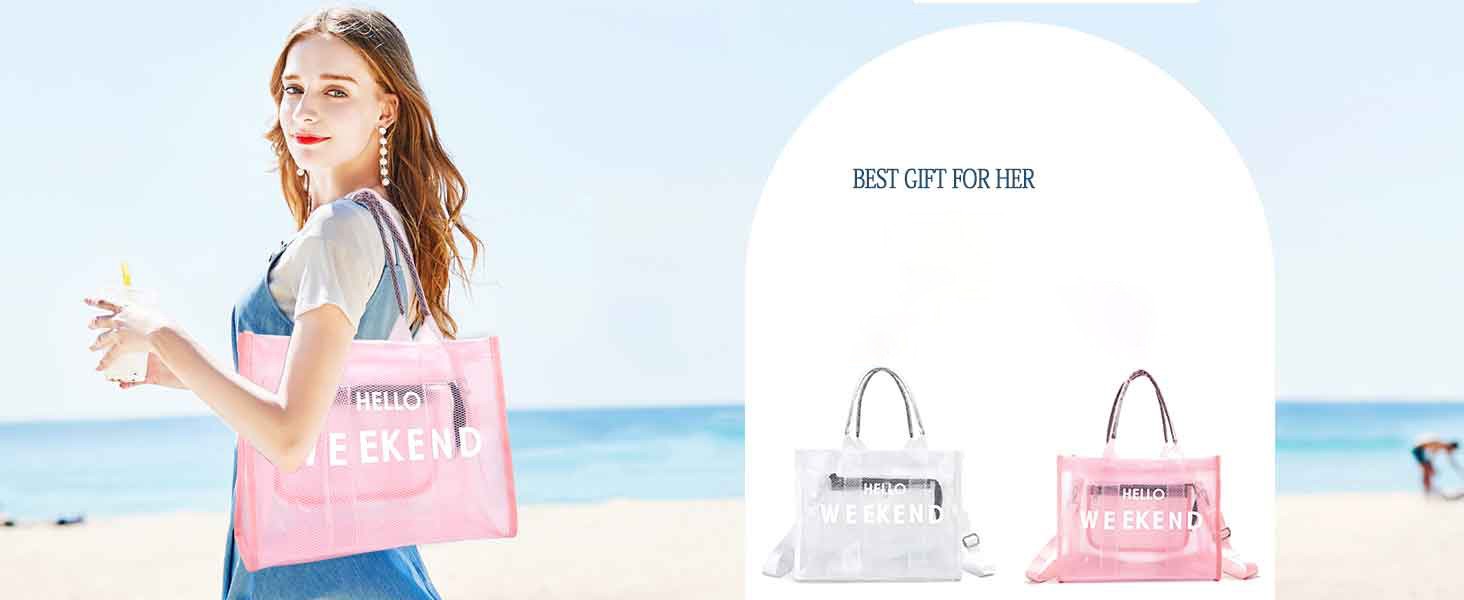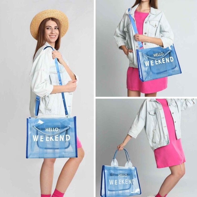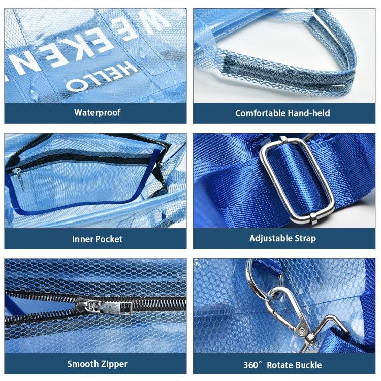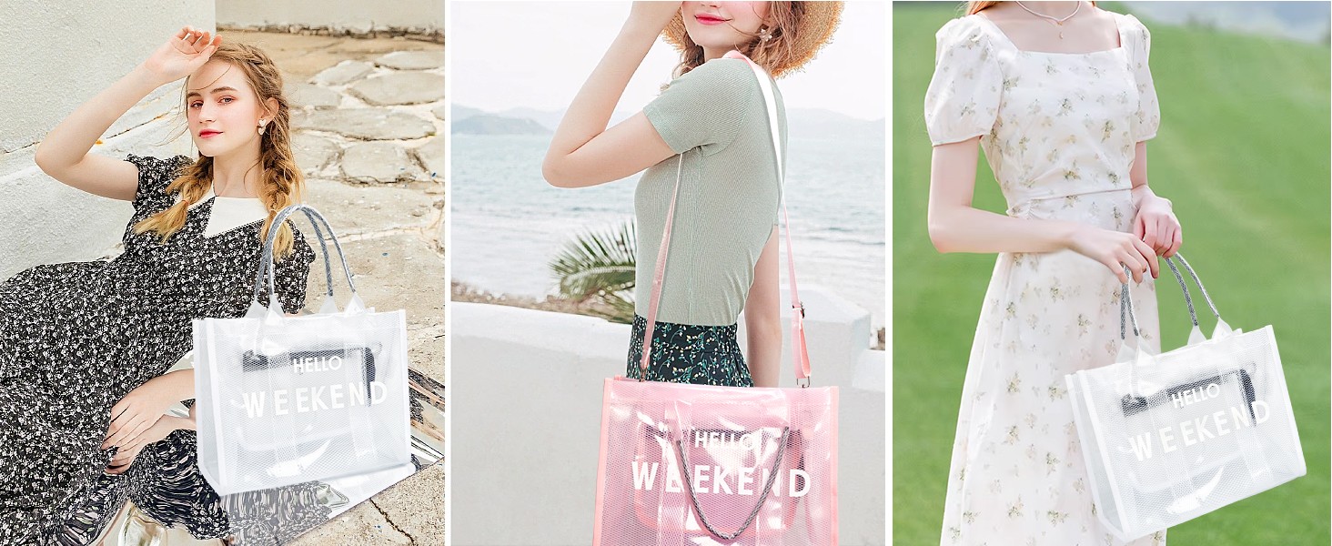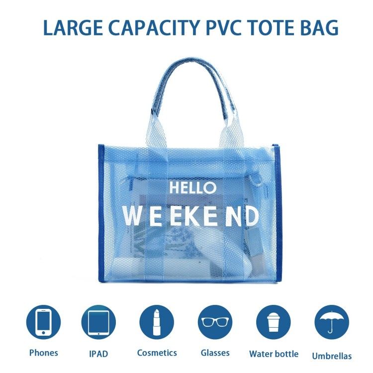 Clear Tote Bag PVC Beach Bag Women's Large Crossbody Shoulder Bag with Zipper