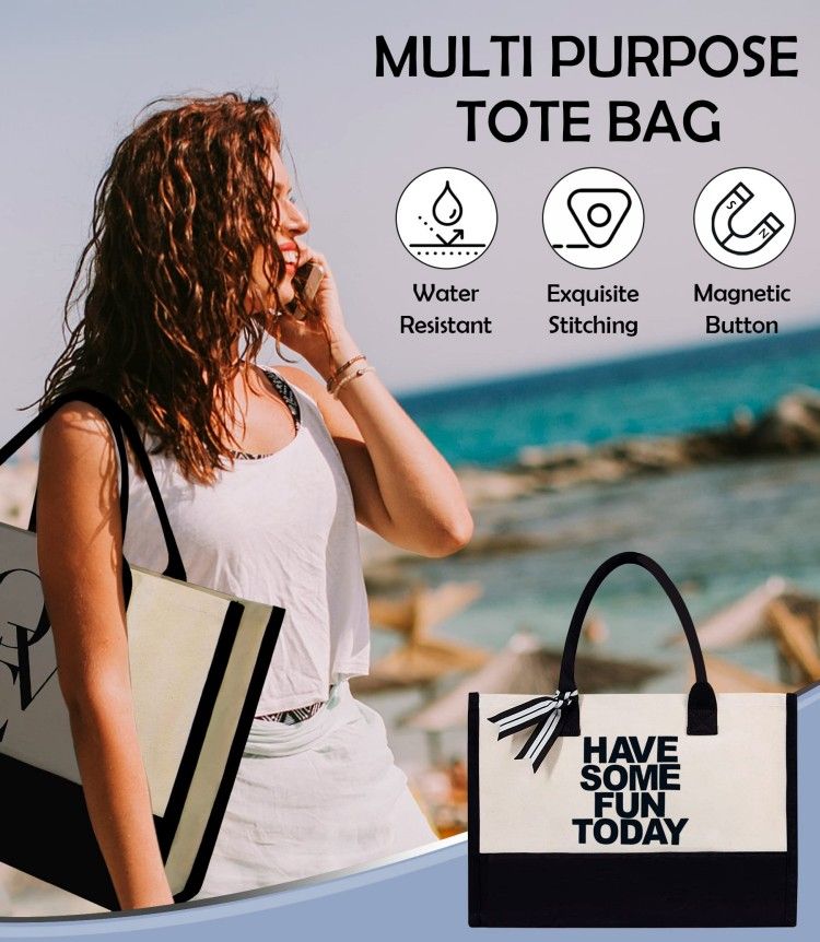 MAGNETIC CONCEALED BUCKLE DESIGN:tote bag is made of canvas with a lined interior. The design of the magnetic concealed buckle not only prevents items from falling, but also makes it easier for you to store your small important items such as mobile phones, keys, glasses, etc. This tote bag is perfect for going to the beach with family and friends.