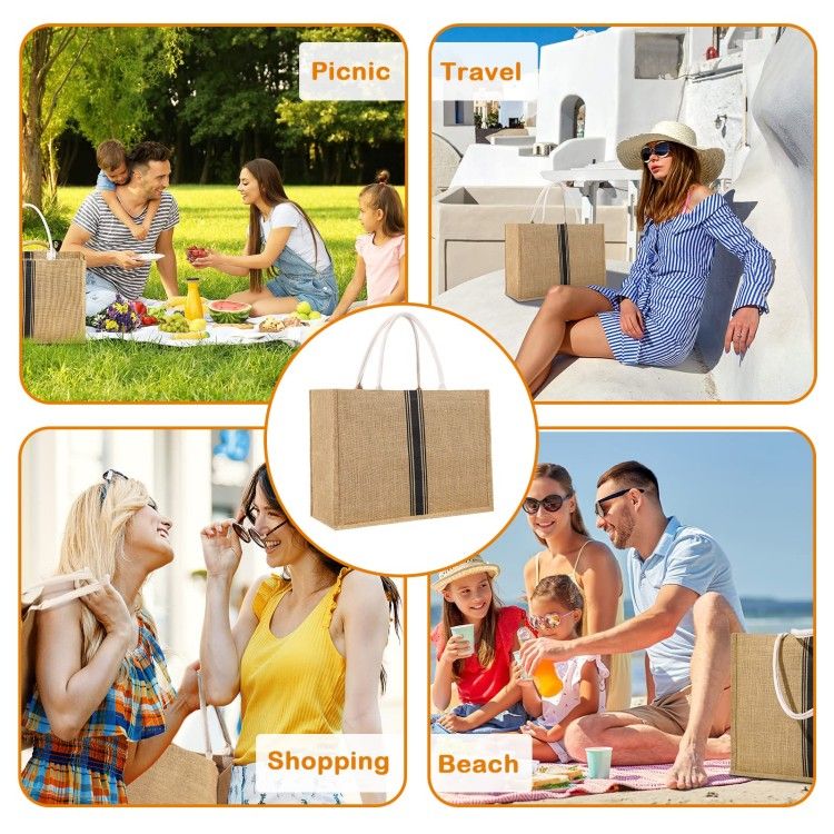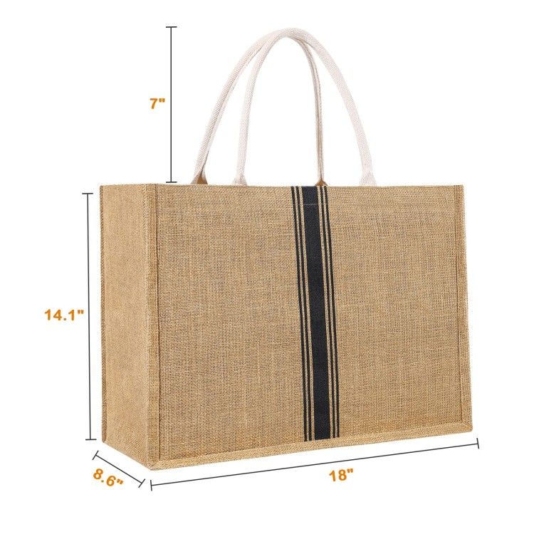 Burlap Reusable Tote Bags with Canvas Side, Bridesmaid Bag Jute Grocery Shopping Bag